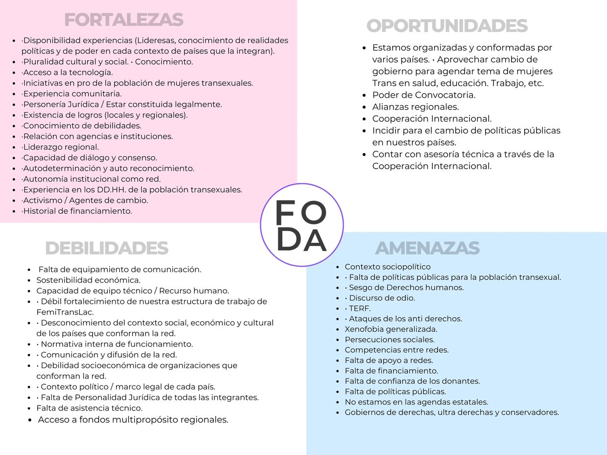 SOMOS UNA RED DE MUJERES TRANS LATINOAMERICANAS Y DEL CARIBE PIONERA QUE A TRAVES DE LA CAPACITACIÓN, LA INFORMACIÓN, LA INCIDENCIA Y EL TRABAJO COLECTIVO, BRINDAMOS APOYO, ATENCIÓN INTEGRAL Y AYUDA HUMANITARIA A LA PERSONAS TRANS MIGRANTES, CON ENFOQUE EN DD.HH, IDENTIDAD DE GÉNERO, INTERSECCIONALIDAD, PARA REDUCIR EL DESPLAZAMIENTO FORZADO, INTERNO Y EXTERNO.